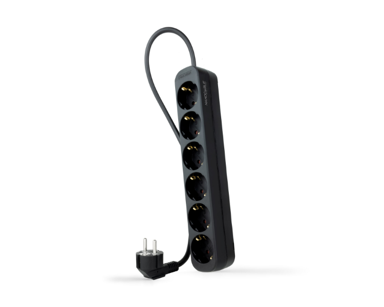 REGLETA PROTECTORA 6 TOMAS CON INTERRUPTOR NEGRO NANOCABLE