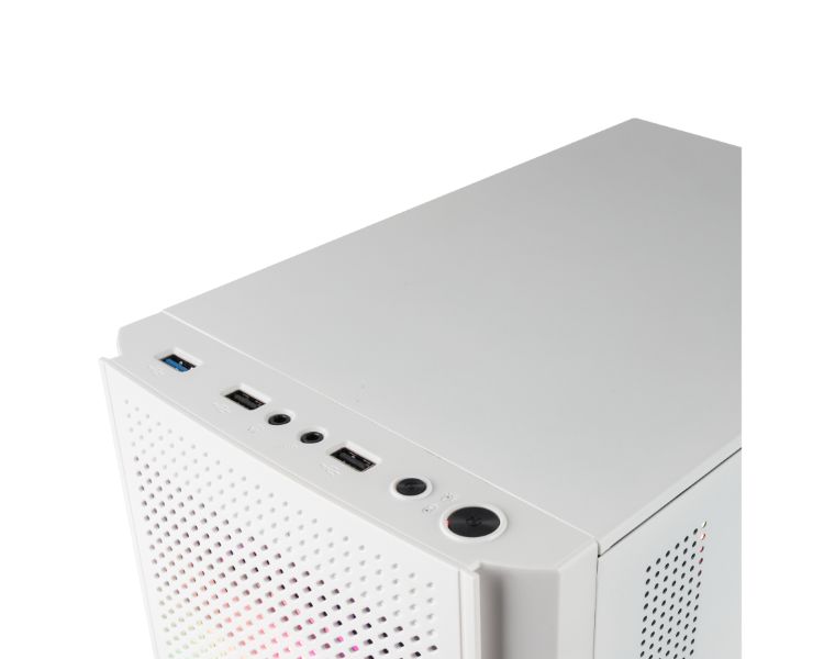 ● Bahias: Internas: 2 x 3'5, 4 x 2'5 ● Color Del Producto: Blanco ● Conectores: USB 2.0 x 2, USB 3.0 x 1, Audio In/Out ● F.A.: No ● Formato: Micro ATX ● Formato F.A.: ATX ● Medidas: 180 x 345 x 270 mm ● Otros: 3 Ventiladores FrGB Incluidos ● Potencia F.A.: Sin fuente