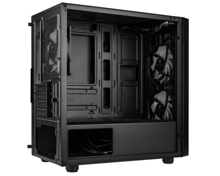 Bahias: Internas: 2 x 3'5, 3+1 x 2'5 Color Del Producto: Negro Conectores: USB 3.0 x 2, Audio In/Out F.A.: No Formato: Micro ATX Formato F.A.: ATX Medidas: 205 x 385 x 400 mm Otros: 2 Ventiladores Frontales ARGB Incluidos, 1 Ventilador Trasero ARGB Incluido Potencia F.A.: Sin fuente