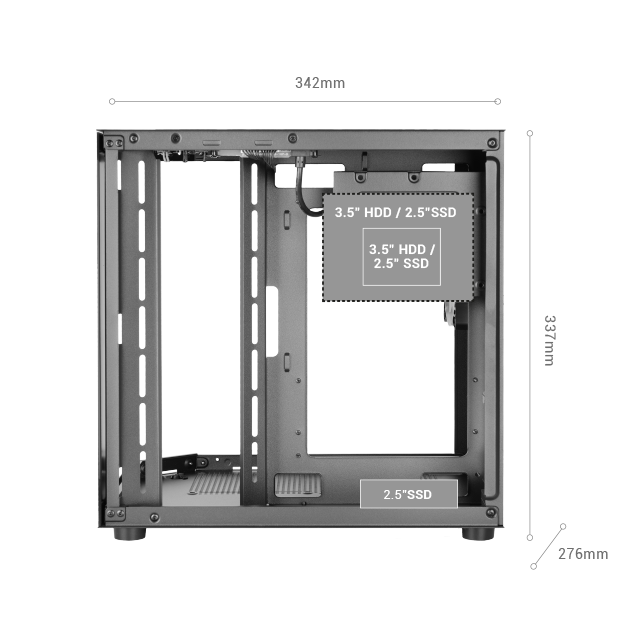 337×276×342 mm / 3.5 Kg / Cristal Templado / RGB Fijo / MicroATX - Mini-ITX / USB3.0 + USB2.0 / 275 mm VGA / Hasta 7 Ventiladores