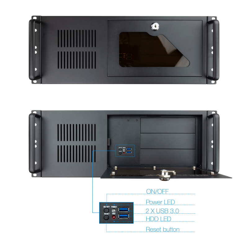 Fabricado en acero laminado en frío muy resistente. Frontal con llave y filtros anti polvo. Muy buena refrigeración gracias a sus tres ventiladores.