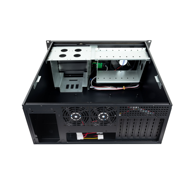 19" 4U/Bahías: 3x5'25 externa / 8x3'5, 2x2'5 internas/ Medida: 485 x 178 x 482 mm