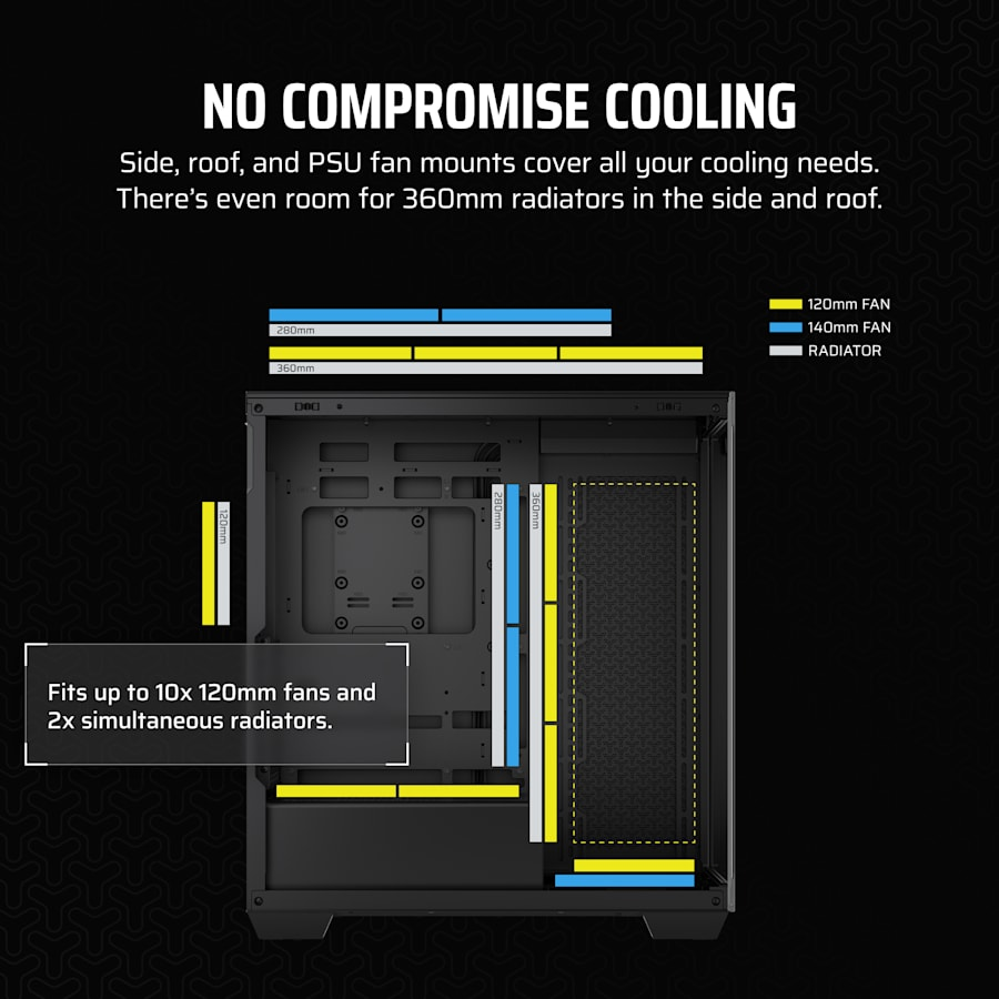 Mid-Tower / CPU 170 mm / GPU 425 mm / 2×HDD + 2×SSD / USB-C 3.2 Gen2x2 + USB 3.2