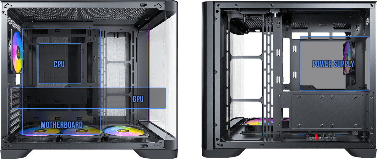 2 x USB 3.0, 1 x Type-C 3.2 Gen 2, 1 x MIC, 1 x HD-AUDIO/ Bahías 3.5x1, 2.5"x2