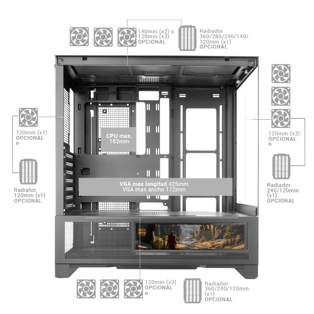 Pantalla LCD IPS 9.16"/ 3 HDD y 3 SSD/ ATX/ Semitorre con cristal lateral y frontal