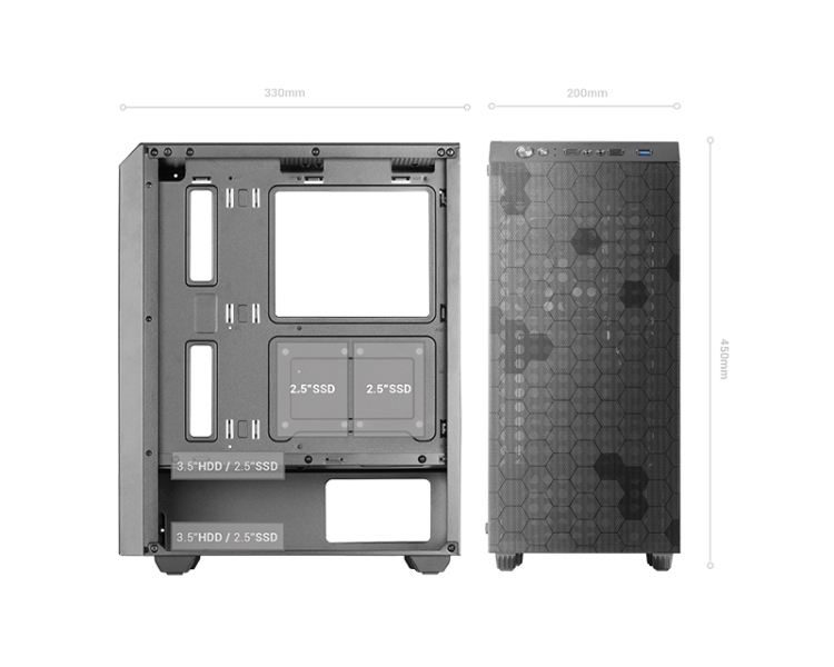 Bahias: Internas: 2 x 3'5, 4 x 2'5 Color Del Producto: Negro Conectores: USB 3.0 x 1, USB 2.0 x 2, Audio In/Out F.A.: No Formato: ATX Formato F.A.: ATX Medidas: 4540 x 200 x 330mm Potencia F.A.: Sin fuente