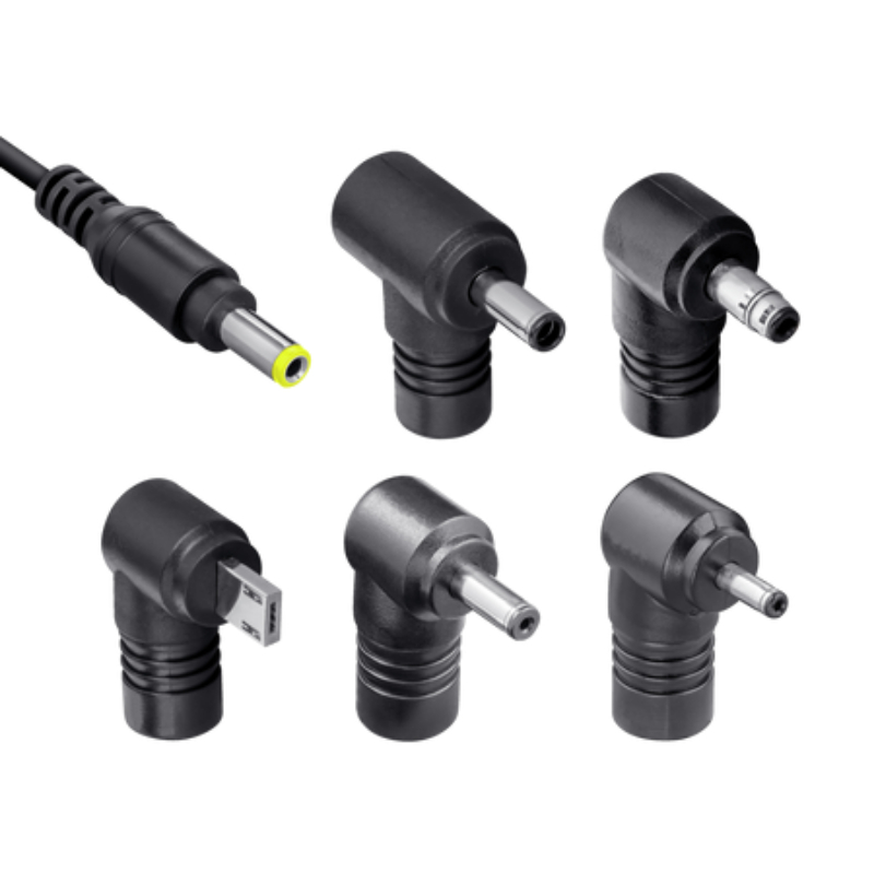 Cargador para ordenador portátil con cable de alimentación y cable con conector acoplado