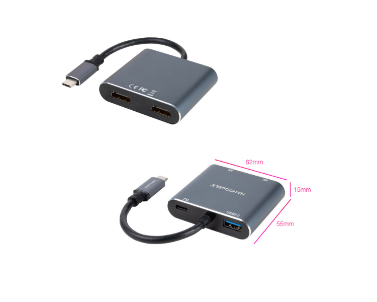 CONVERSOR USB-C A 2xHDMI/USB 2.0/PD 15CM NANOCABLE